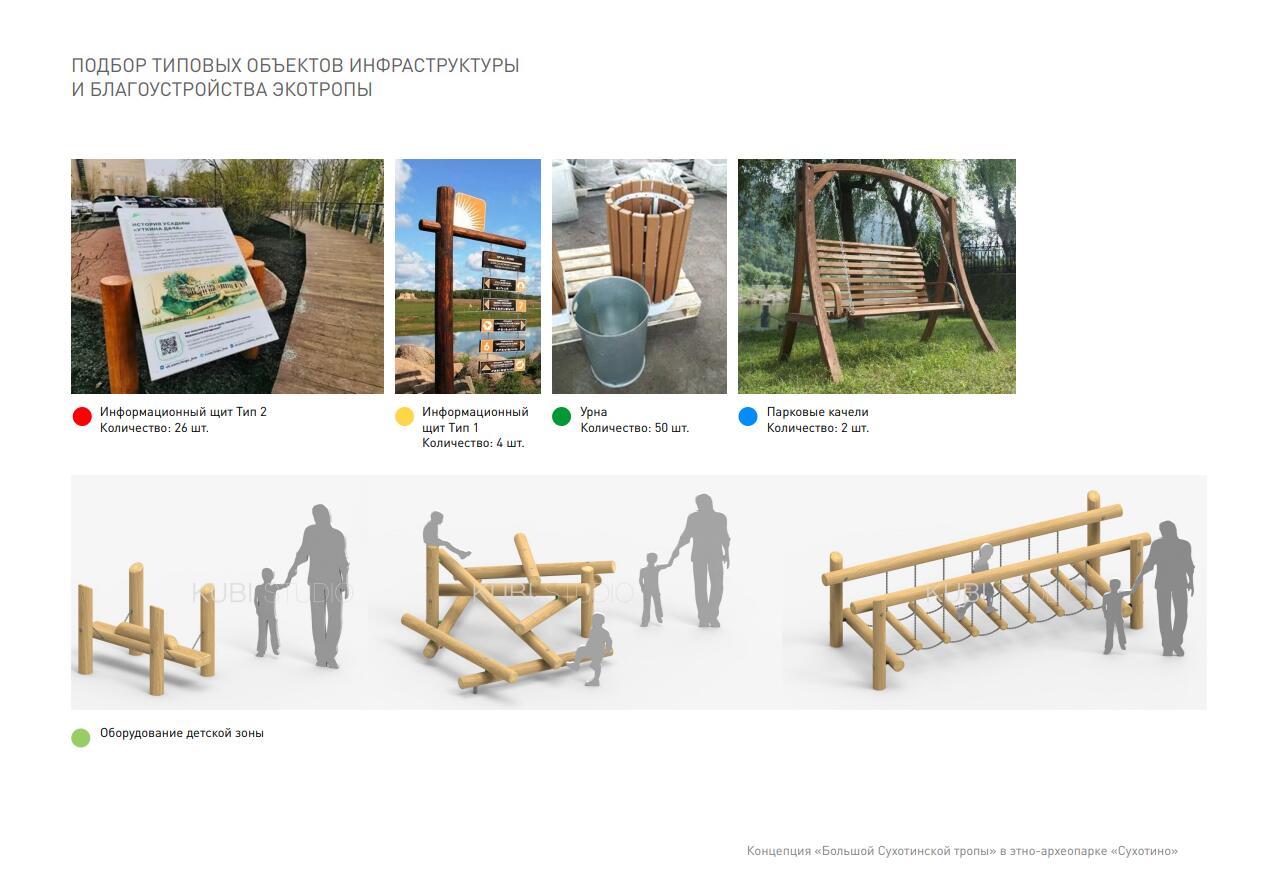 Проект предусматривает создание на туристическом маршруте смотровой площадки, детской игровой зоны, арт-беседки, парковых качелей, туалета, контейнерной площадки для мусора и различных деревянных скамеек. Вдоль всей тропы установят современные светодиодные светильники для комфортного и безопасного передвижения туристов даже в тёмное время суток.