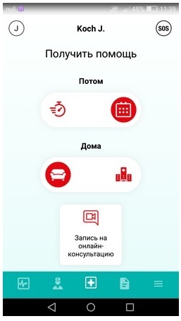 Для начала скачайте приложение SmartMed на свой смартфон и зарегистрируйтесь в нём, следуя инструкциям. Попасть на онлайн-приём к врачу просто: на главном экране, в который вы попадёте сразу после регистрации, выберите правую кнопку «Календарь» для записи на плановый приём или левую кнопку «Будильник» для срочной консультации. После этого появится новая опция «Запись на онлайн-консультацию».