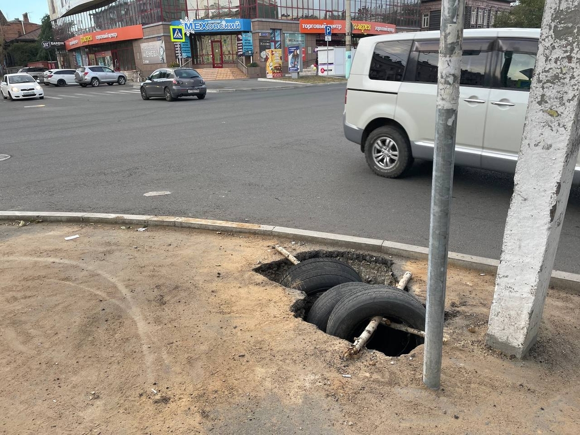 Общество 18:56 Яму с колёсами заметили читинцы на перекрёстке в центре города Всё находится в таком состоянии больше месяца