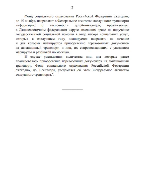 Отныне Фонд социального страхования (ФСС) будет оплачивать авиабилеты в оба направления независимо от того, если ли железнодорожное сообщение с местом лечения, в том числе санаторно-курортного. Помимо прочего, ФСС теперь должен предоставлять сопровождающему ребенка-инвалида льготный билет.