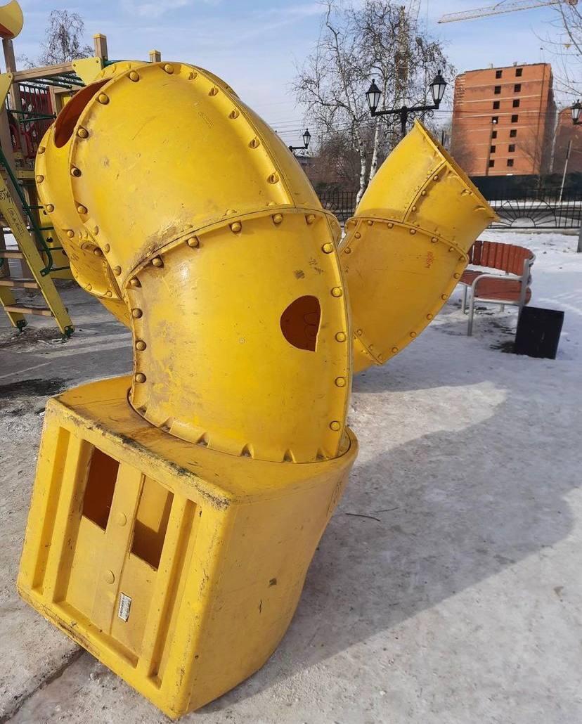 Спиралевидный спуск горки на площади Труда демонтировали - часть сооружения больше не пригодна для детских игр.