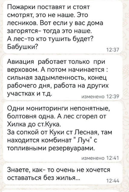 Скрин сообщения местного жителя