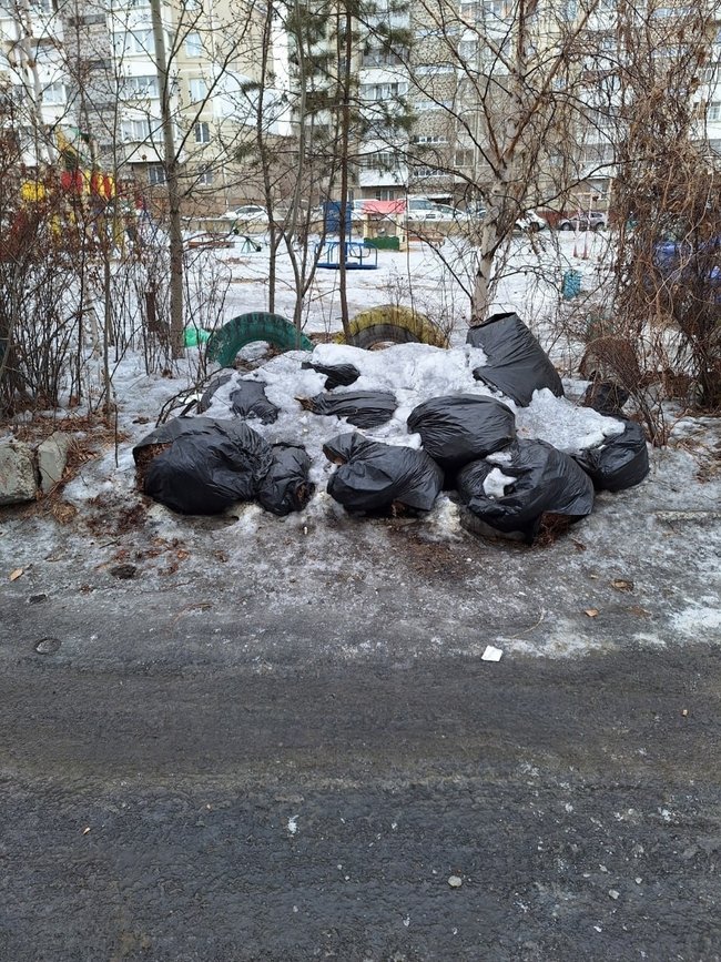 Общество 20:24 Мусорные мешки стали вестником весны в читинском дворе Люди заметили их после того, как начал таять снег