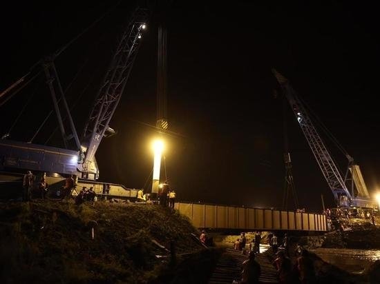 Авто 19:15 Работы по укладке рельсов на рухнувшем жд мосту завершаются Рабочие производят укладку рельсов на одном из путей
