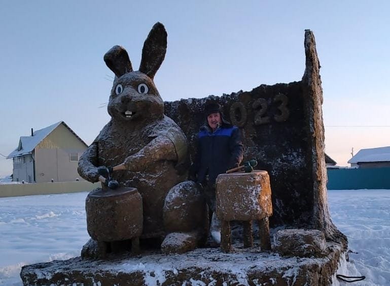 Общество 23:02 В Якутии отметят Новый год с зайцем из навоза Пo словам скульптора, работа над композицией далась нелегко.